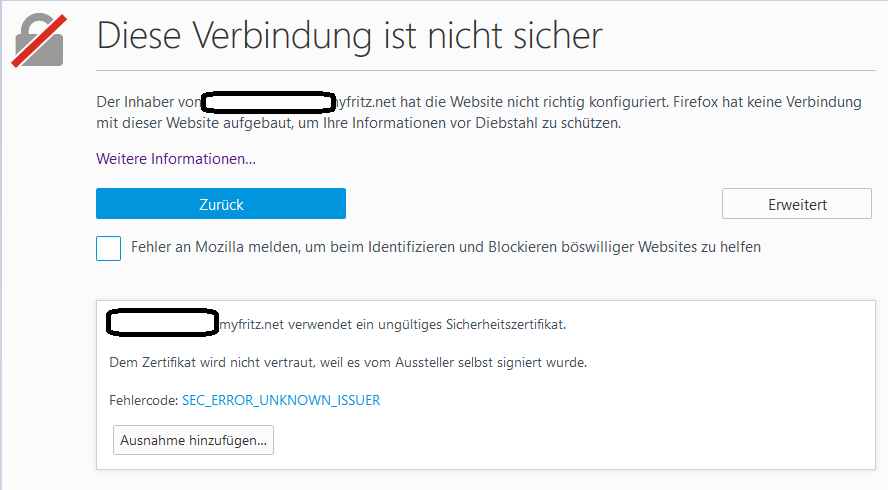 Könnte theoretisch auch schon SSL geschützt sein, nur eben mit abgelaufenem/ungültigen/nicht verifizierbarem Zertifikat.wie käme ich per ssl auf meine box?