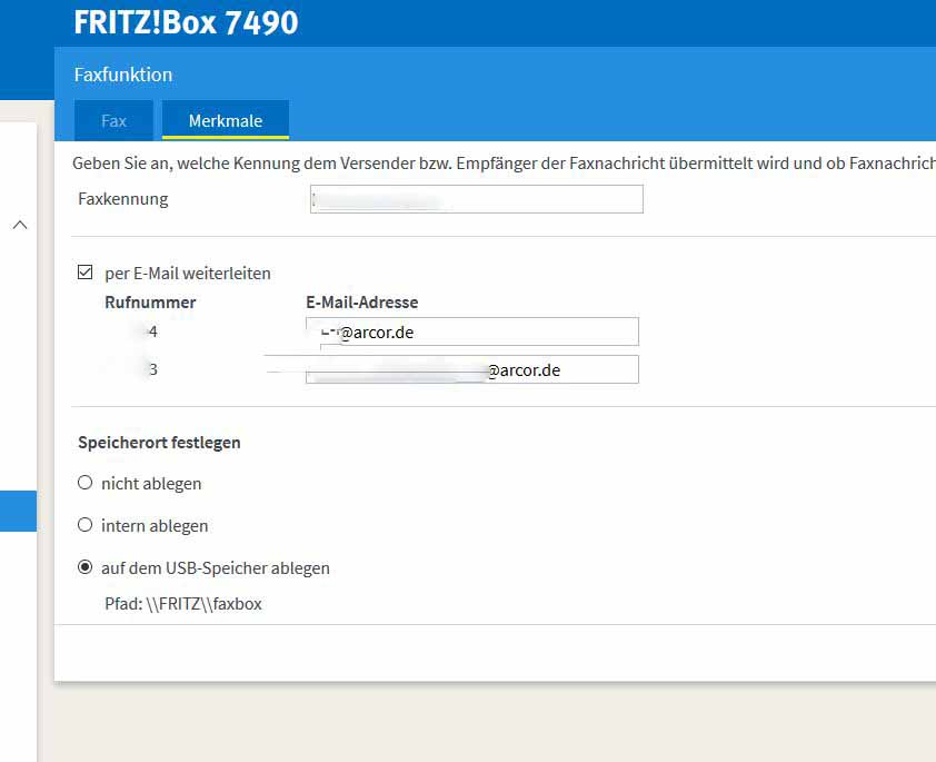Ich habe bei meiner 7490 zwei Fax-Nr. mit zwei unterschiedlichen E-Mail Adressen am laufen.