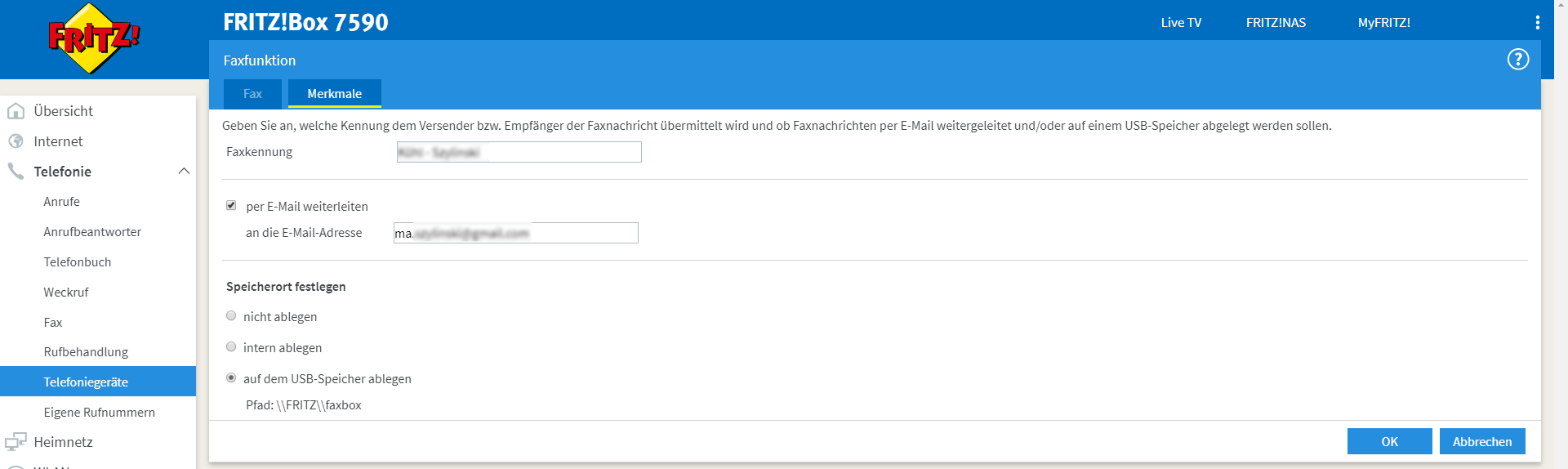 Hallo zusammen, ich habe mir nun unter Fritzbox, Fritzfax eingerichtet. Leider funktioniert die email Weiterleitung nicht. Bekomme die Faxe auf den Internen USB Speicher wenn ich welche erhalte. Was für ein Fehler mache ich?