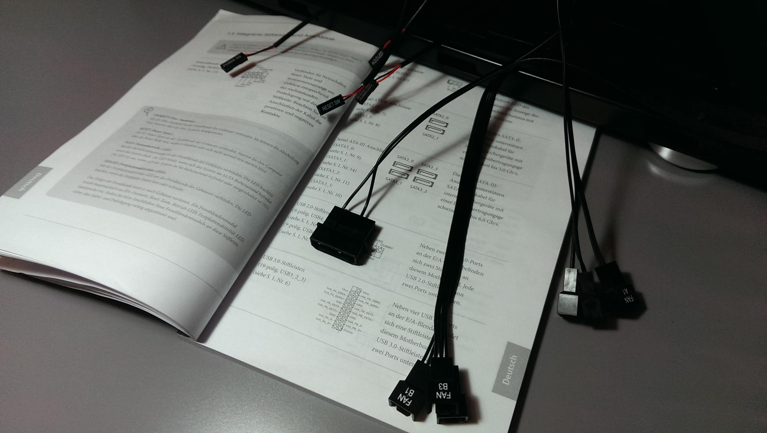 Ich habe soweit auch alles anschließen können, aber das Front Panel und die Lüfterkabel machen mir Probleme.