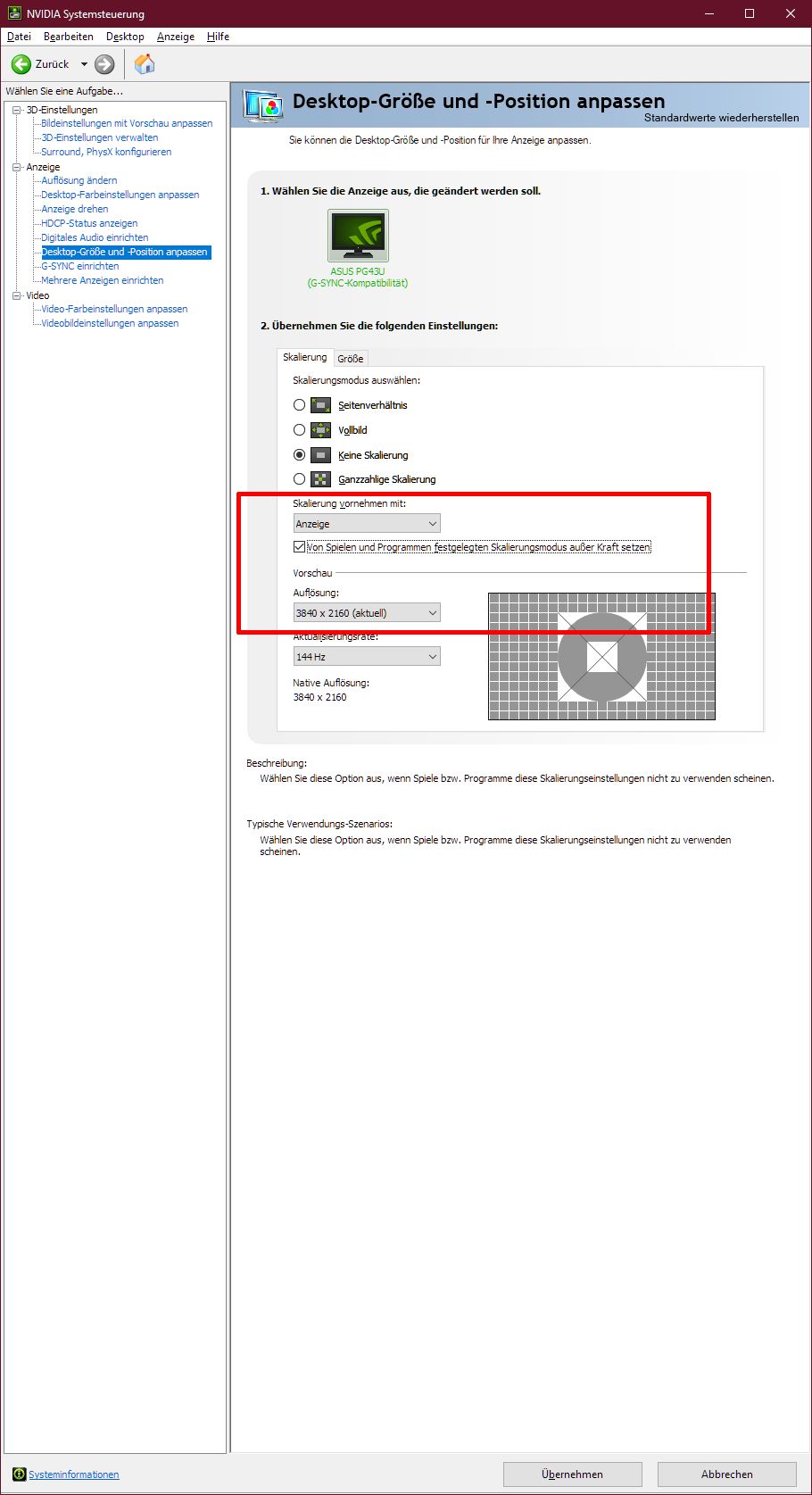 Nach dem ersten starten des FS2020 waren alle Setting auf Ultra und 4K Auflösung eingestellt, sieht wunderbar aus aber die Auflösung als solche zwingt meine 5700xt dann doch in die Knie. Also runter gestellt auf 2560x1440 (fullscreen) damit lauft das Spiel bei Resolutionscale 100% erstaunlich und wirklich gut aber sieht fürchterlich aus, nämlich eher als würde man 800x600 auf 4K aufblasen das betrifft sowohl infame als auch die Schrift und das gesamte Menü. Egal welche Auflösung, Abseits der nativen Monitor Auflösung von 3840x2160px ich einstelle, das Ergebnis, mit oder ohne Kantenglättung, ist optisch das gleiche - scharf gezackte Kanten. Hat jemand das gleich oder ein ähnliches Problem?