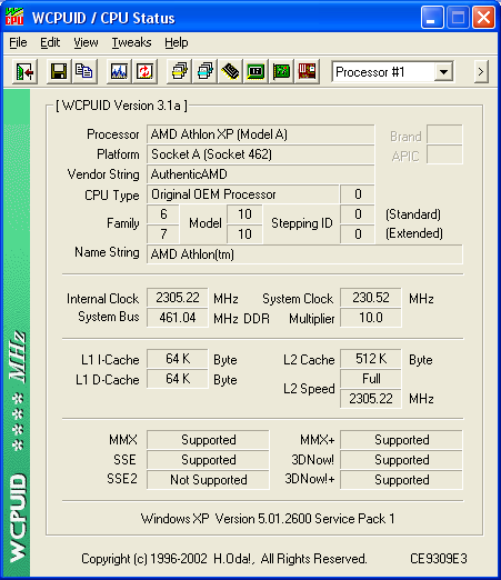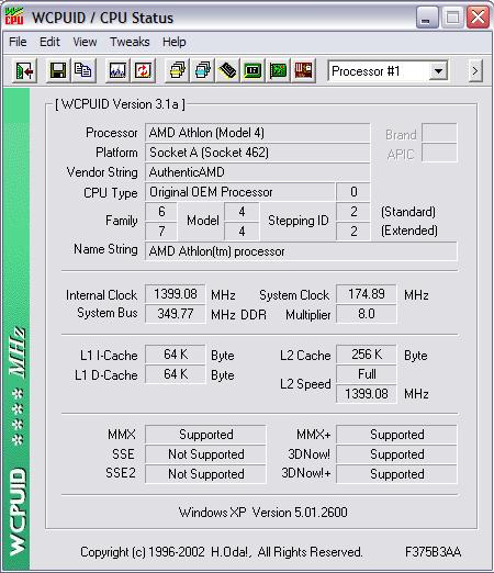 War standardmässig mal ein Athlon TBird-C mit 1Ghz (133*7,5), heute lass ich ihn stabil auf 1,4Ghz laufen (175*8).