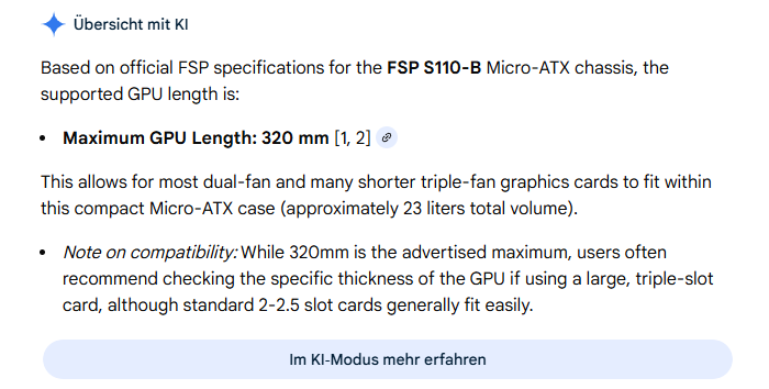 Daher würde mich interessieren, ob man nicht vielleicht doch eine 305mm lange Karte unterbekommen würde, vielleicht hat ja schon jemand Erfahrungen mit dem Gehäuse machen können.