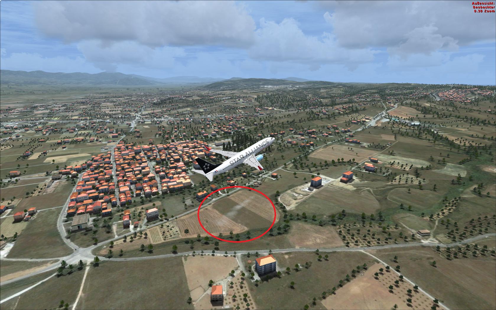 Der "Schleier" ist kein Kondensstreifen, sondern das was beim Start direkt hinterm Fahrwerk zu sehen ist (der "Staub"). Dieser befindet sich immer senkrecht unter dem Flugzeug. Wenn ich das Flugzeug dann wechsel, dann ist der Schleier weg. Nach dem Steigflug ist der Schleier immer noch da -.-