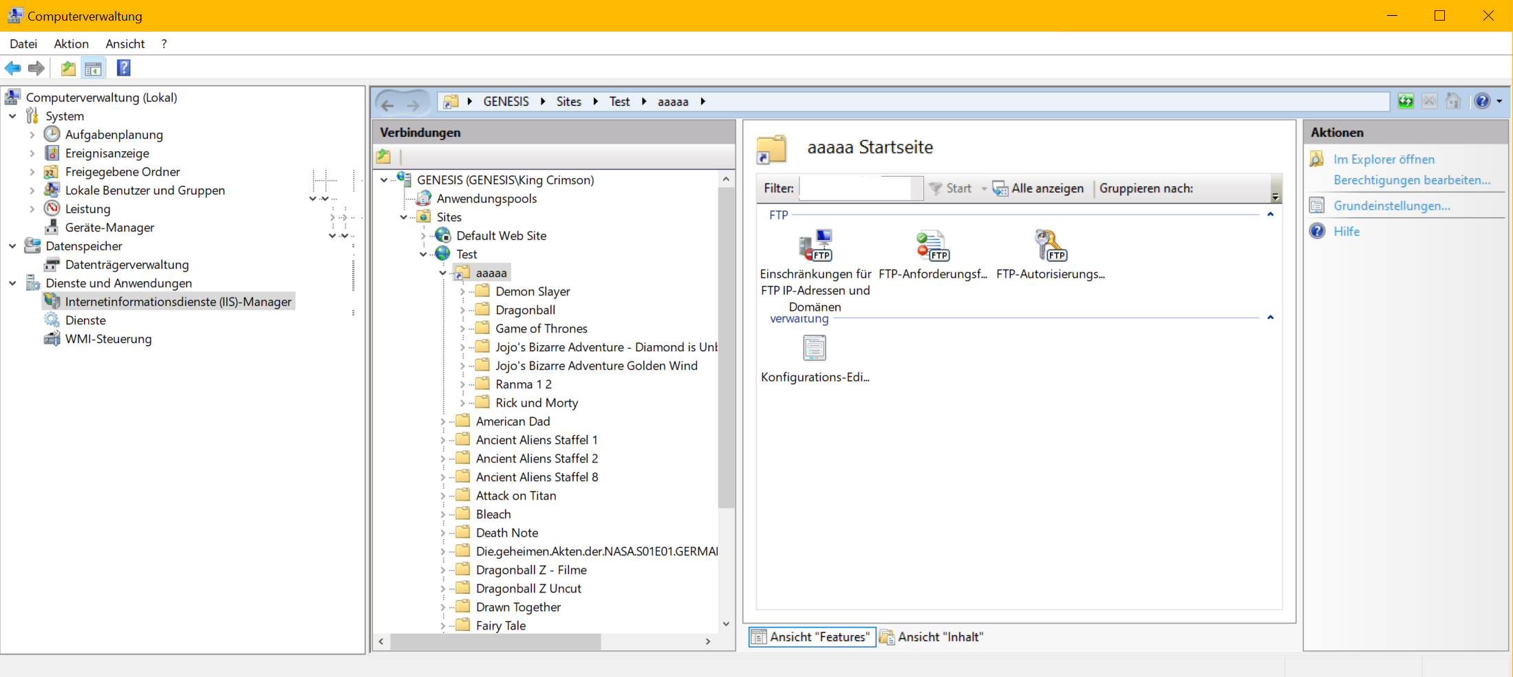 Ich habe noch ein Screenshot von meiner Computerverwaltung hochgeladen ist, wo man einsehen kann wie die Auflistung dort dargestellt ist. Liegt das eventuell an dem VLC Player oder gibt es Einstellungen seitens des FTP Servers auf dem Rechner die ich vornehmen muss, um eine detaillierte Anzeige der Unterordner zu bekommen??