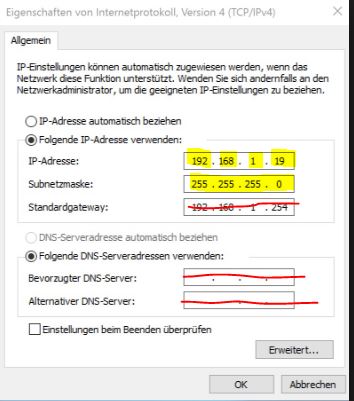 Netzwerkkarte am PC lässt sich doch manuell einstellen. IP Adresse im Netzwerk manuell einstellen und fertig, so mache ich das auch wenn der PC nicht ans Internet soll (PC Zugriff lokal im Netzwerk festlegen).