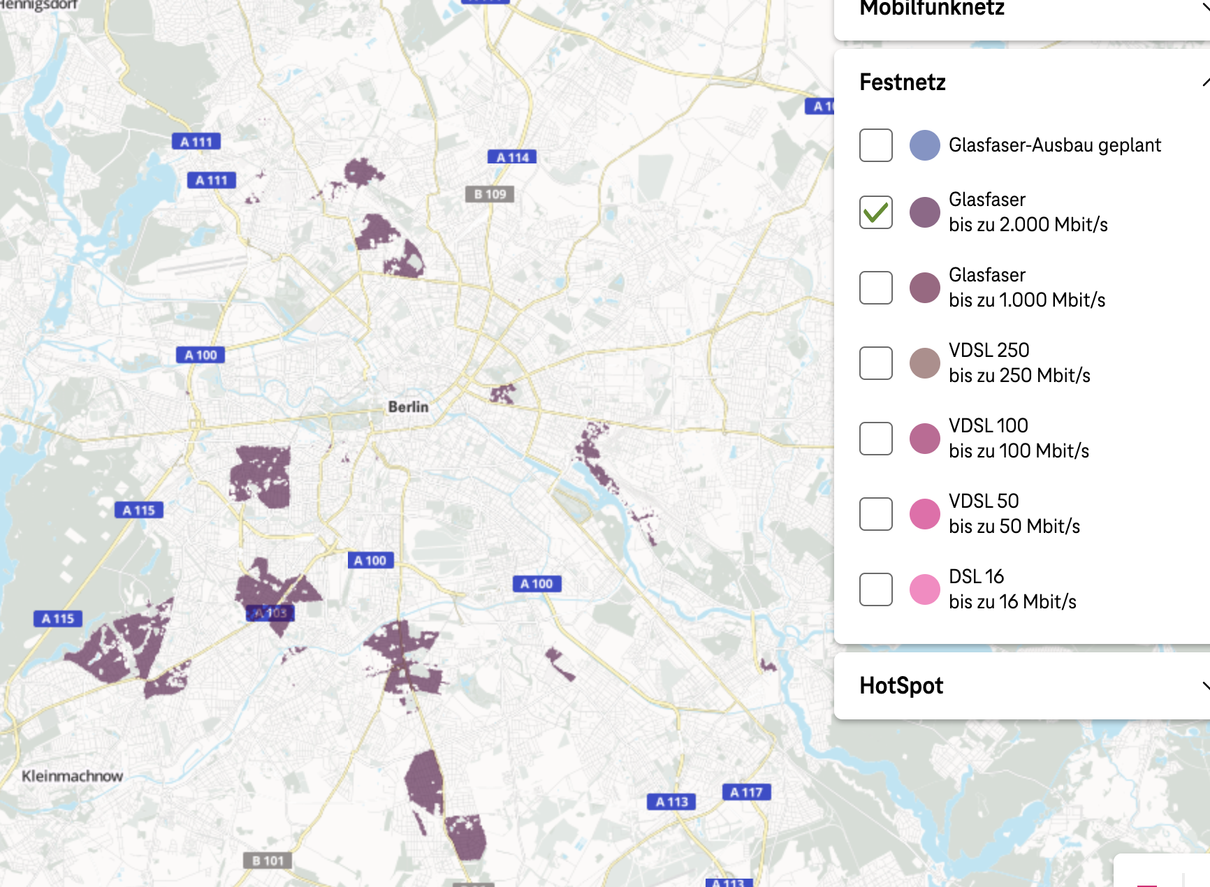 Die Karte färbt auch gerne mal Gebiete als 2Gbit ein, wo der FTTH Ausbau noch läuft. Wirkt auf der Karte dann zumindest in Berlin mehr als es eigentlich ist.