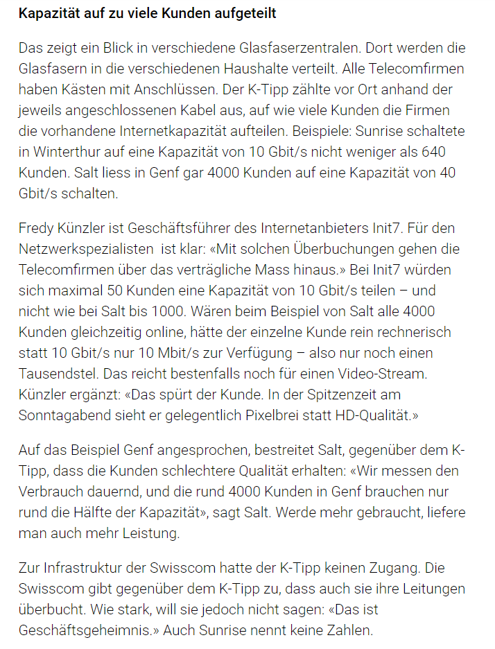 Edit: Ich habe den Artikel gefunden. Es ist nur eine 1000-fache Überbuchung. Die müssen ja nicht in einem Segment liegen. Wenn die Leitung zum Provider überbucht ist, geht es dann trotzdem nicht schneller. Der Artikel liegt hinter einer Paywall. https://www.ktipp.ch/artikel/artikeldetail/internetfirmen-prellen-die-kunden
