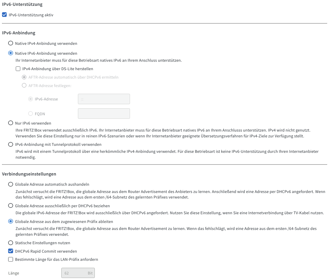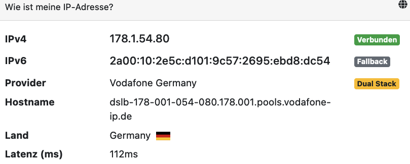 Sie bekommen dazu auch eine private IPv4-Adresse, damit Sie weiterhin Dienste nutzen können, die noch keine