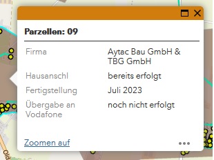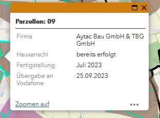 Alle Parzellen um mich herum sind im Juni/Juli an Vodafone ĂŒbergeben worden. Meine natĂŒrlich noch nicht