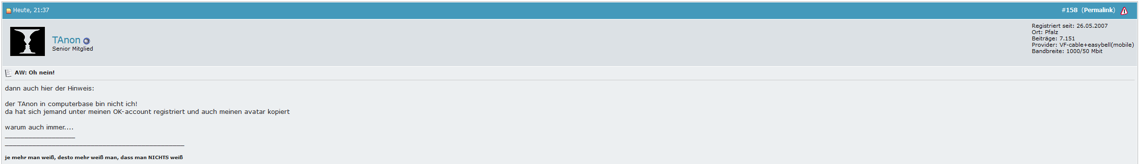 War auch lange Zeit bei Onlinekosten.de unterwegs, vor allem eben zur DSL Zeit bei mir, ende der 2000er, durch die vielen Neuerungen damals und damit verbundenen Probleme.