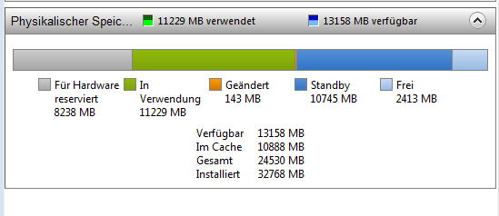 Ich habe 32GB eingebaut wovon 8GB reserviert sind, also ein Ganzer Riegel der nur von Win genutzt wird.