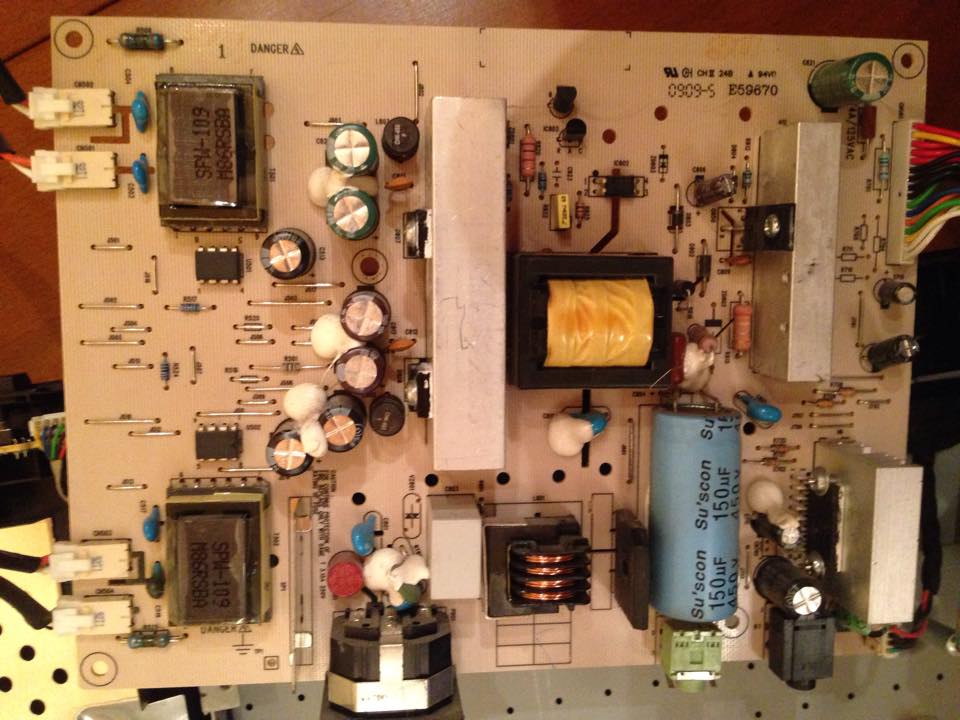 Leider habe ich nicht soviel Ahnung davon was es sein könnte, auf der Platine sind solche weißen dinger an manchen Bauteilen.
