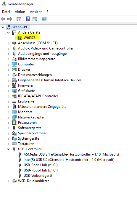 Wenn ich dann die passenden Treiber von der func Website (1.28) installiere sieht es im Gerätemanager so aus.