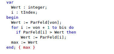Funktionsaufruf: w:= max(Feld, 1, 10)