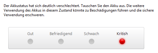 Hallo, ich habe seit einer Weile ein Problem: Mein Laptop (Sony Vaio, F-Serie, 1 Jahr und 3 Monate alt, Win7 Home Prem 64bit) kann den Strom von meinem Akku nicht nutzen. Aktuelle Treiber und Updates sind installiert. Ich habe den Akku in den Laptop meiner Schwester eingesetzt (absolut gleiches Modell, gleiche Kaufdatum)) und er funktionierte! Aber der Akku meiner Schwester funktioniert nicht in meinem Laptop. Ohne Netzteil funktioniert mein Vaio nicht, er startet nur mit Akku nicht einmal. Mit Netzteil und Akku blinkt die Akkuanzeige rötlich, obwohl der Akku noch in Ordnung ist. Es trotzdem immer die Anzeige, dass mein Akku einen kritischen Zustand erreicht hat und ich ihn wechseln sollte, angezeigt wird nur eine leere Batterie ohne Netzteil, obwohl es angeschlossen ist (siehe Anhang). Ich habe den Akku über den Geräte-Manager deinstalliert und den Treiber aktualisiert, hat aber auch nicht geholfen (natürlich auch nichts Negatives hervorgerufen). Ich habe mir gedacht, dass es vielleicht an einem Softwarefehler liegt, ich habe Windows sogar neuinstalliert, ohne Erfolg. Dann kam die Idee eines Hardwareschadens, aber sämtliche Diagnosetools haben nichts entdeckt, keine Flüssigkeiten kamen an meinen Laptop, kein einziges Mal fallengelassen oder sonstige Erschütterungen und heißer als der Laptop meiner Schwester kann meiner nicht geworden sein (sie nutzt ihn sogar intensiver). Immerhin wird der Akku auch entdeckt.
