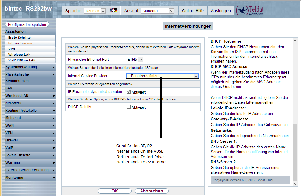 1. WAN - Internet + Einwählen - Richtige Konfiguration angegeben