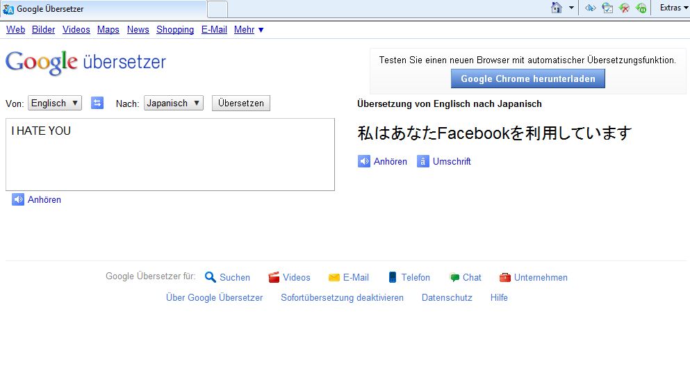http://translate.google.de/translate_t?hl=&ie=UTF-8&text=I+HATE+YOU&sl=en&tl=ja#