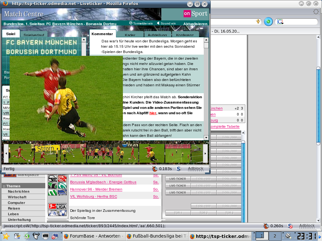 Edit: Gerade gehört. Bayern gewinnt 2:0 gegen Dortmund. Makaay und Schweini haben je eines geschossen.