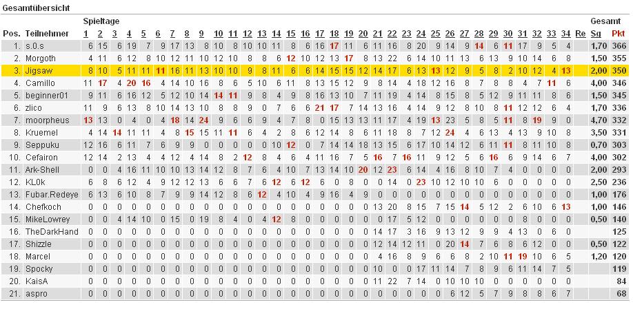 Eine Saison mit Höhen und Tiefen geht für mich als Werderfan zu Ende. Glaubte ich an der Vorrunde noch an den Meistertitel, schwand im Winter sogar die Hoffnung auf den internationalen Wettbewerb. Jetzt sind wir nach überstandener Krise und toller Aufholjagd Tabellendritter und haben eine gute Chance, uns für die CL zu qualifizieren. Daran hätte ich Anfang des Jahres nicht mehr geglaubt. Good Job, Werder!