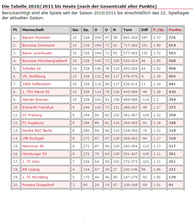 @HanneloreHorst: wir machen aus unseren finanziellen Mitteln verglichen mit anderen genau das was man eigtl. erwartet. Finde ich. Denn uns fehlen wiederum 200-300 Millionen Umsatz gegenüber den Bayern. Gemessen daran macht der FCB grad richtig viel falsch mit grad mal 4 Pünktchen Abstand. Und ansonsten holen wir regelmäßig den 2.ten oder 3.ten Platz. Davon können doch alle anderen Teams in der Bulli nur träumen oder? Schalke mal ne gute Saison bis jetzt aber sonst? Schau dir Leverkusen an...mal hopp oder maximal 3er oder 4er.