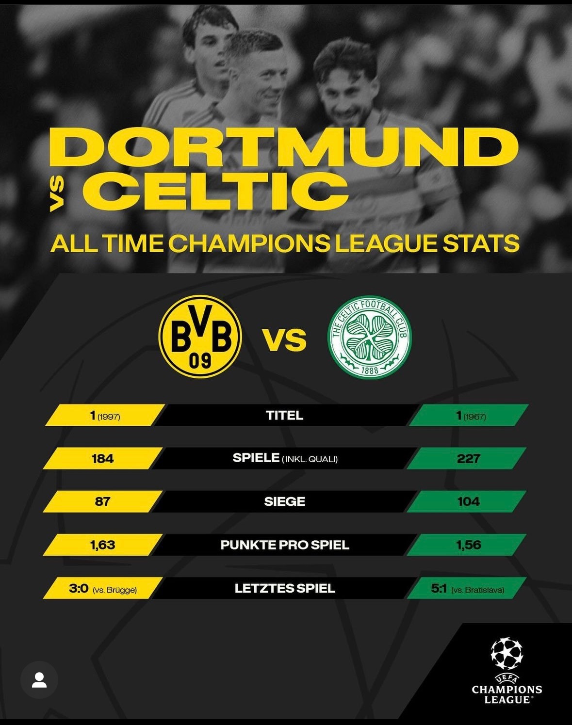 Die haben mehr spiele und mehr Siege als der BVB in der CL vorzuweisen und haben auch letzte Woche 5:1 gegen Bratislava gewonnen.
