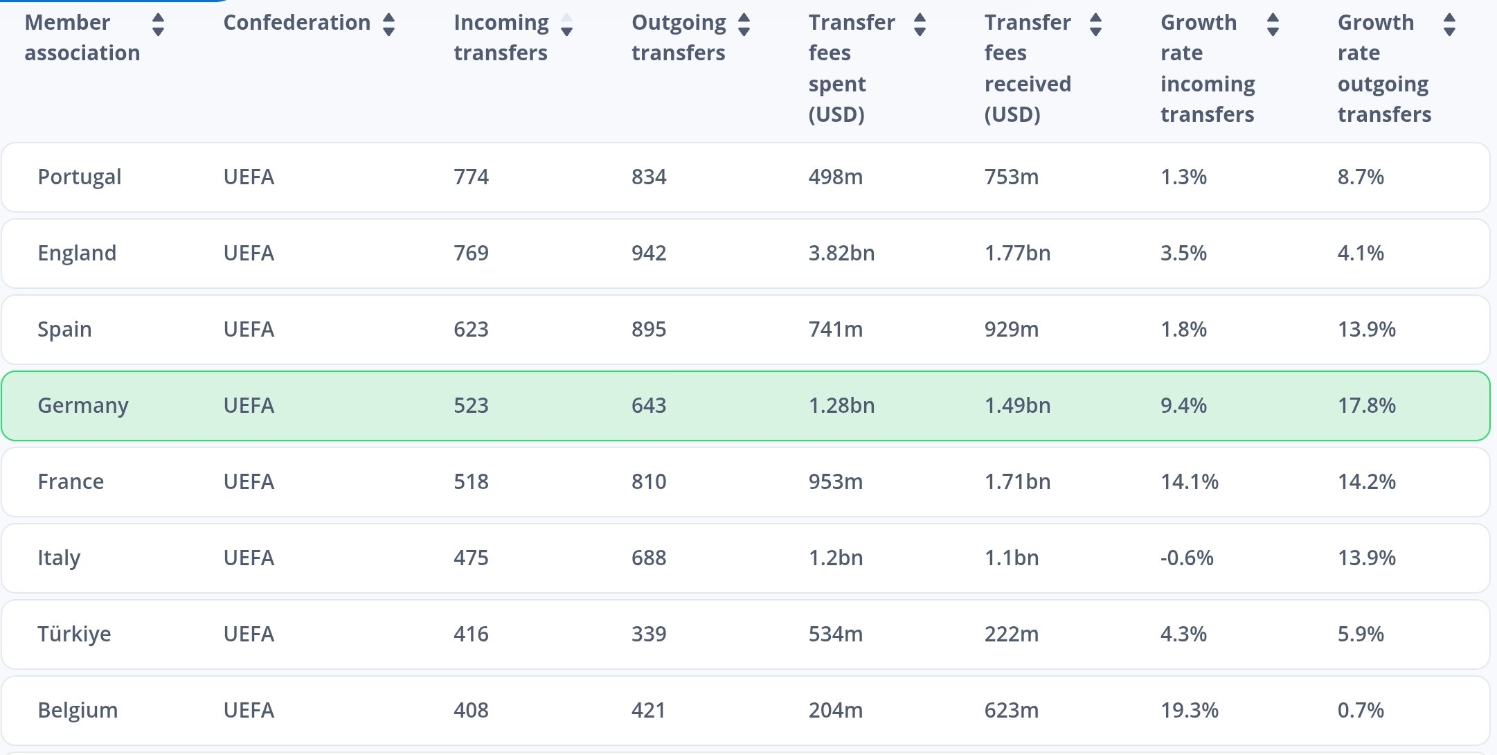 Interessant die hohe Anzahl an Transfers im kleinen Portugal.
