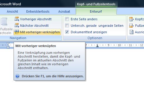 Fußzeile in Word 2007