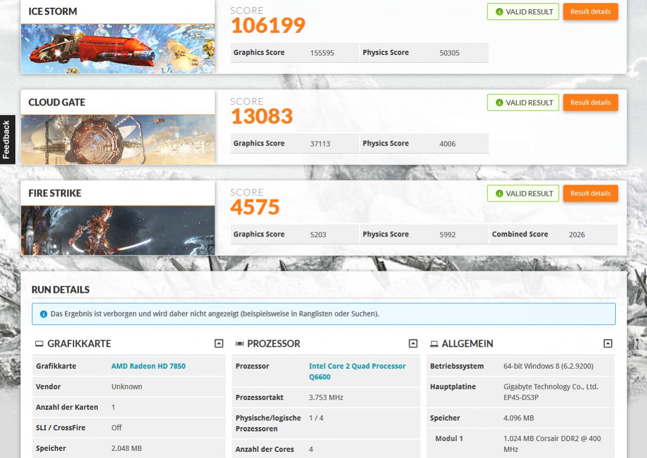 Hatte beim ersten Durchlauf nur Diashow beim Firestrike, bis ich festgestellt habe, dass MSI Afterburner irgendwie die Taktrate meiner Graka runtergeschraubt hatte.