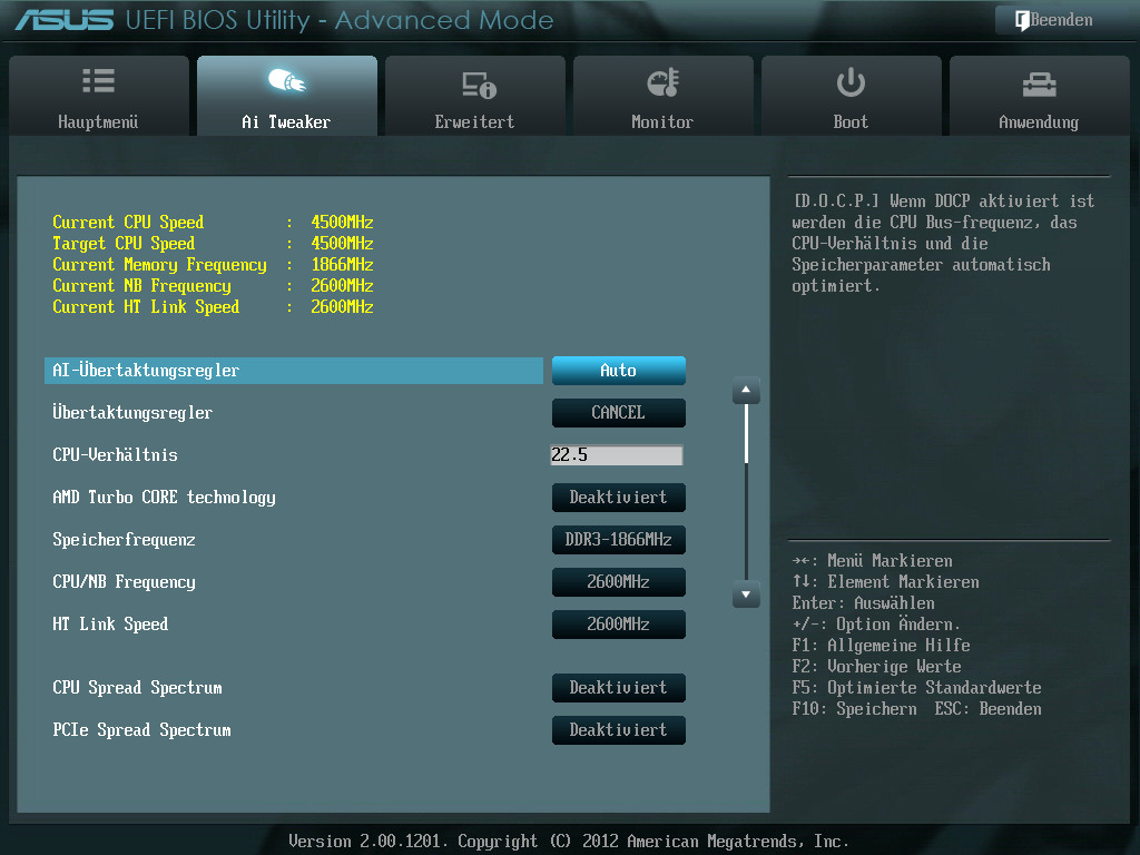 Ja genau so habe ichs ja gemacht. Ich wollte mit der CPU-Spannung nicht allzu hoch, da ich damit ja auch die Leerlaufspannung anhebe. Daher bin ich mit der LLC etwas hochgegangen, um dem Spannugnseinbruch unter Last etwas entgegenzuwirken. Es scheint ja, dass Du bei 4,5 GHz die gleichen Werte hast wie ich. Das beruhigt mich schonmal.
