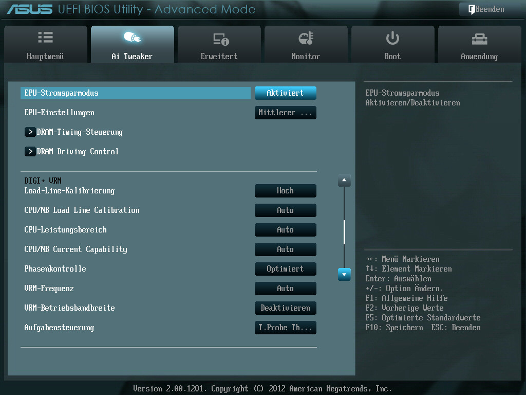 Also die einzige Spannung, die ich manuell erhöht habe und die nicht auf auto steht ist die CPU-Spannung. Meine VID beträgt für die höchste Turbostufe 1,4125 V. Die +0,12 V im Bios sehen nach viel aus, aber Du darfst nicht vergessen, dass die Spannung unter Last ziemlich einbricht. Ich habe wie gesagt unter Last mit den Einstellungen 1,368 V mit erhöhter Load-Line-Kalibrierung. Und ja, der Prozessor wird ziemlich warm, 65°C können da durchaus schon erreicht werden. BOINC oder Prime könnte ich damit unter Vollast nicht mehr laufen lassen, für den normalen Workload isses aber ok. Bei mir liegt das unter anderem daran, dass mein Gehäuse gedämmt ist. Ist halt ein unter Alltagsbedingungen funktionierender Kompromiss.