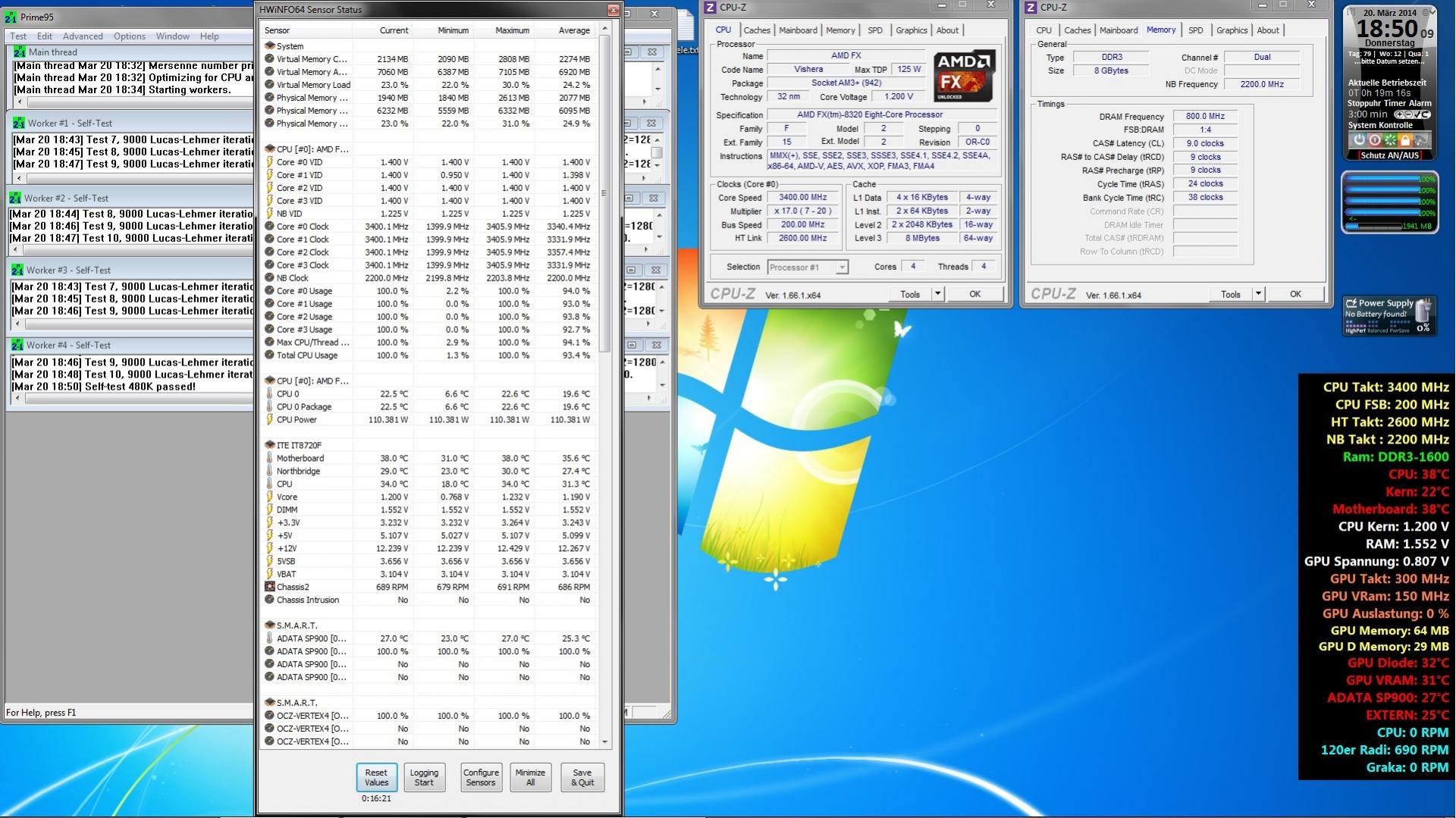 Wenn ich bespielsweise Prime95 starte dauert es keine 2 Sekunden bis die Taktrate so stark abfällt. Beim Spielen ist es so dass die ersten 3 Minuten flüssig laufen, dann droppen die Werte stark und bleiben für ca. 10 Sekunden unten, dann steigen sie wieder un bleiben ~konstant, dann fallen sie wieder usw. - Dieser Kreislauf wiederholt sich permanent während dem Spielen.
