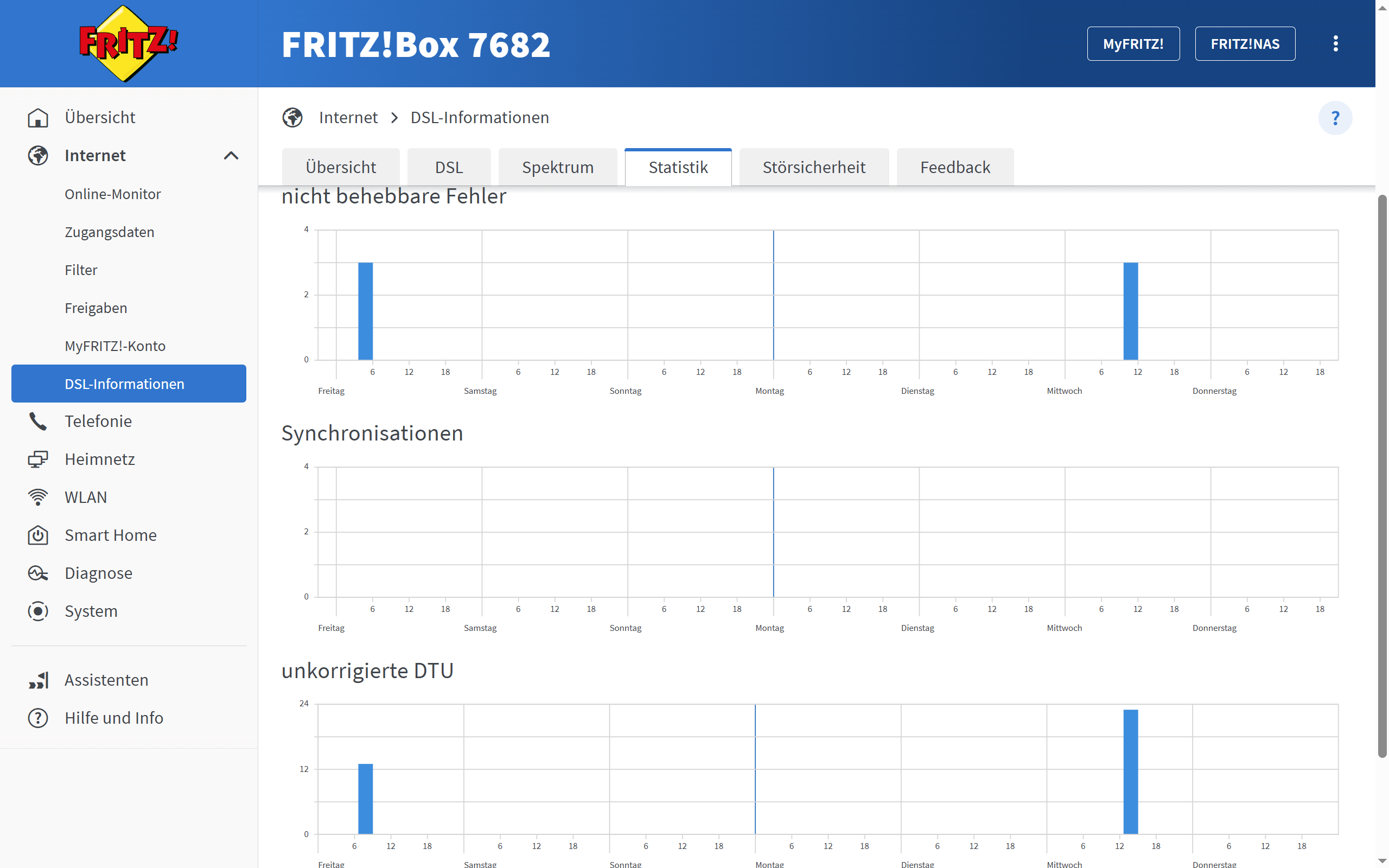 Bei mir zeigt die FB überall 0 Fehler an für die letzten 7 Tage (sowohl im Diagramm als auch in der DSL Statistik).
