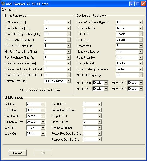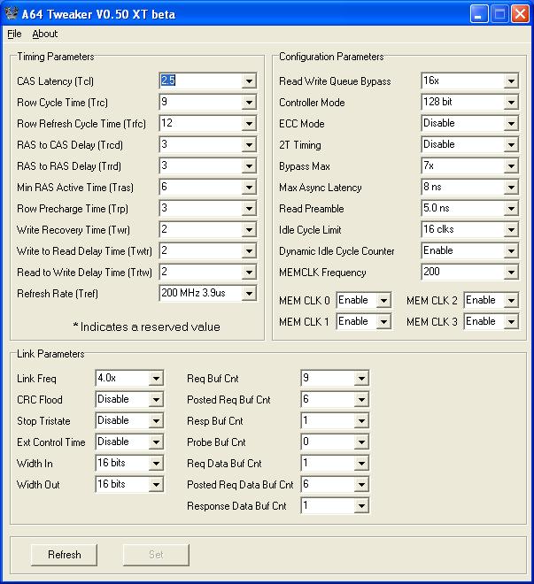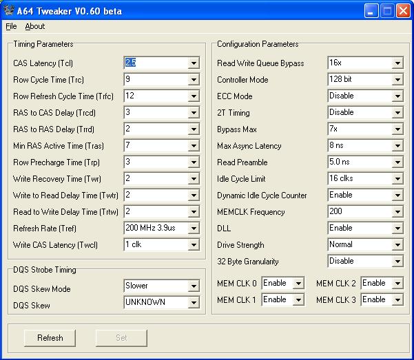 Habe nun den RAM auf meinem DFI Board.. ( Das hoffentlich auch bald wesch ist.. ) und bekomme ihn net wirklich stabil zum laufen. Bei Dual Prime kackt immer einer von beiden CPUs ab und SuperPi bekomme ich "NO exact in round". Das sind meine momentanen Settings @ 2,7V und 250 Mhz!