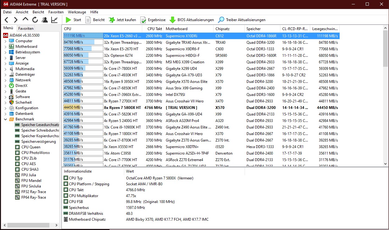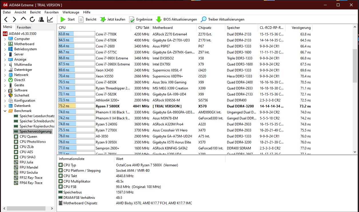 Kommt mir bei Aida64 im vergleich zu den anderen angezeigten Systeme so vor.