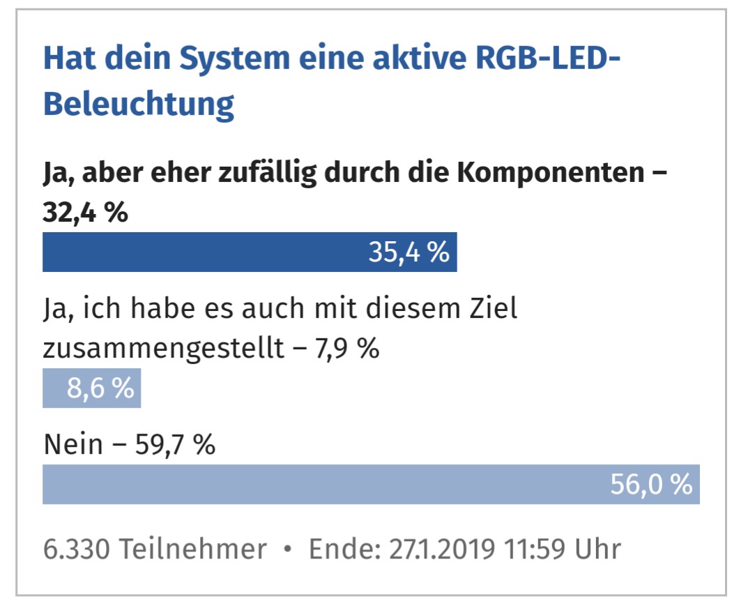 Als hast du den PC nachträglich zufällig mit RGB ausgestattet?Esenel schrieb:Ich habe auch die 35,4% Antwort gewählt.