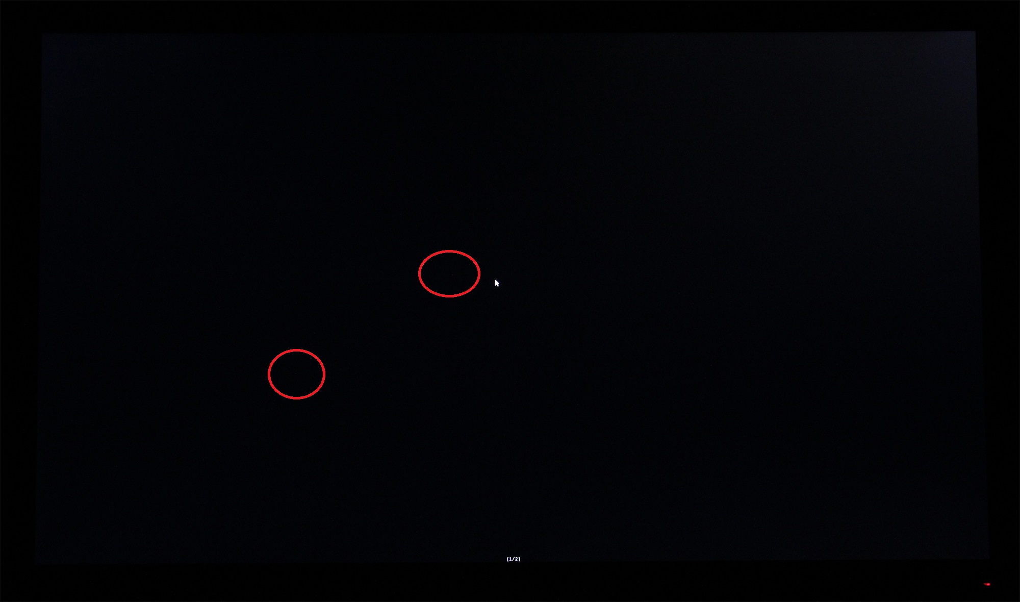 Die Pixelfehler sind in der linken, unteren Bildhälfte. Einer näher an der Mitte.