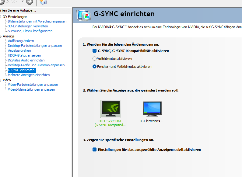 - DELL S2721DGF sollte eigentlich G-Sync unterstützen, seltsamerweise wird im HDR Modus in Windows Freesync Premium Pro angezeigt