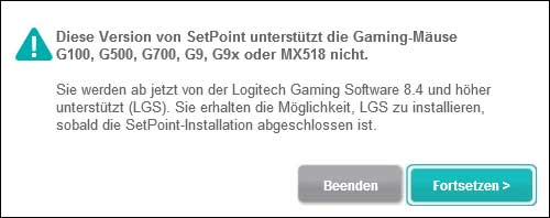 die Logitech Hardware der G-Serie wird nicht weiter mit der SetPoint Software betrieben.
