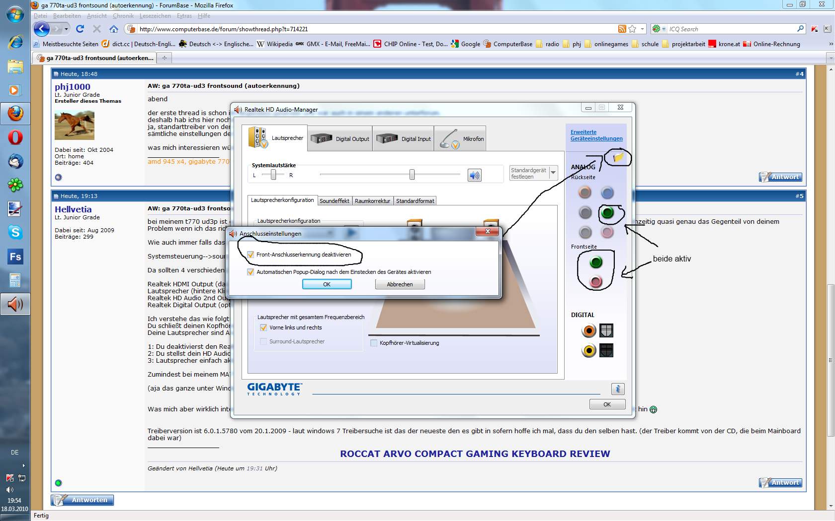 realtek hd treiber R244 ist zu zeit installiert, ich glaube nicht das es am treiber liegt da ich es auch schon mal mit windows 7 standardtreiber versucht habe, mit dem gleichen ergebnis.