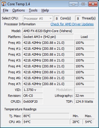 - AMD FX 8320 @ 4.00 GHz mit Brocken 2 Kühler drauf