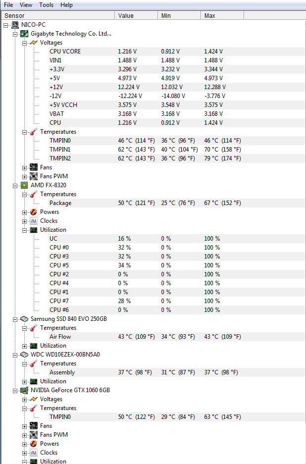 Ich hab mit dem Alten und dem Neuen Netzteil mit HW Monitor die Temperaturen ausgelesen die sind in Ordnung nur das Mainboard hat bis zu 70°C und bei beiden Netzteilen lagen die -12V zwischen -7/-3V alle anderen Werte sind in Ordnung (bei Bedarf kann ich ein Screenshot nachreichen). Das Mainboard ist 4-5 Jahre alt.