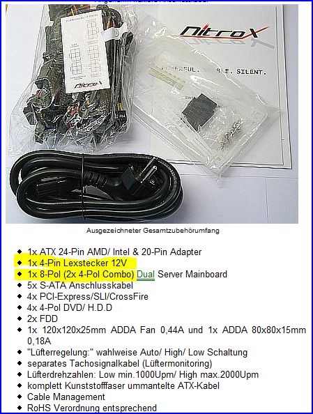 Auf besagtem MB soll ein Intel Core2duo E6750 "laufen" Wie o.a handelt es sich um die Gretchenfrage, wann muss der P4Stecker auf dem Board Ga-P35 DS3 benutzt werden, sprich auch durch das Netzteil mit entsprechendem 4poligem Stecker verbunden werden? Frage desshalb, weil mein neues NT der Fa. Nitrox keinen mehr hat, sondern nur noch 6polige, der aber wiederum ist auf dem Board nicht da!. Nun bin ich ersteinmal etwas verunsichert, und warte mit dem zusammenbau meines neuen PC`s, bis ich hier zuverlässige Angaben bekomme. Möchte ja nichts falsch mahen.
