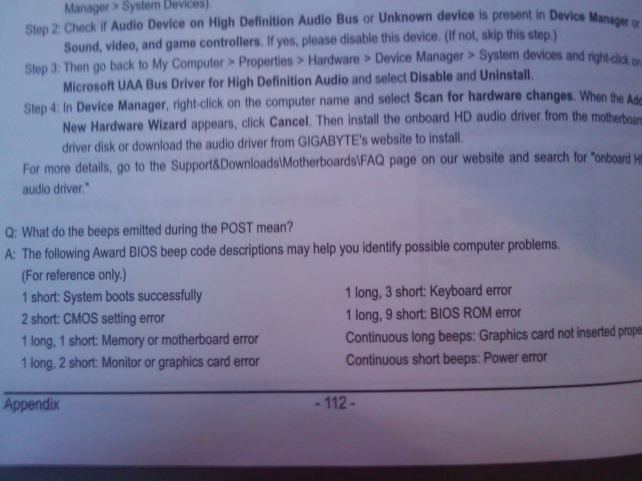 Toubleshooting Seite 112 sind die Beepcods erklärt ;)