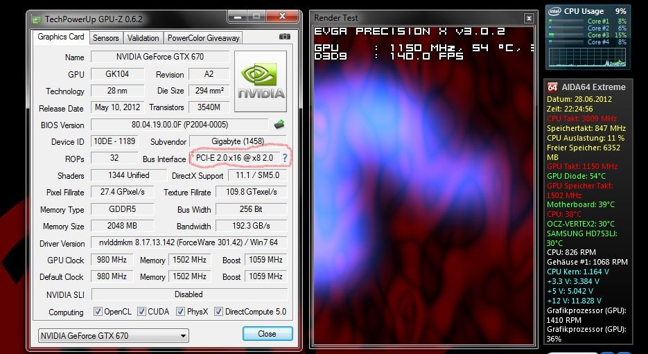 Die Grafikkarte ist im obersten PCIEX slot gesteckt und USB3 Turbo im Bios deaktiviert um die Lanes nicht zu beschneiden.