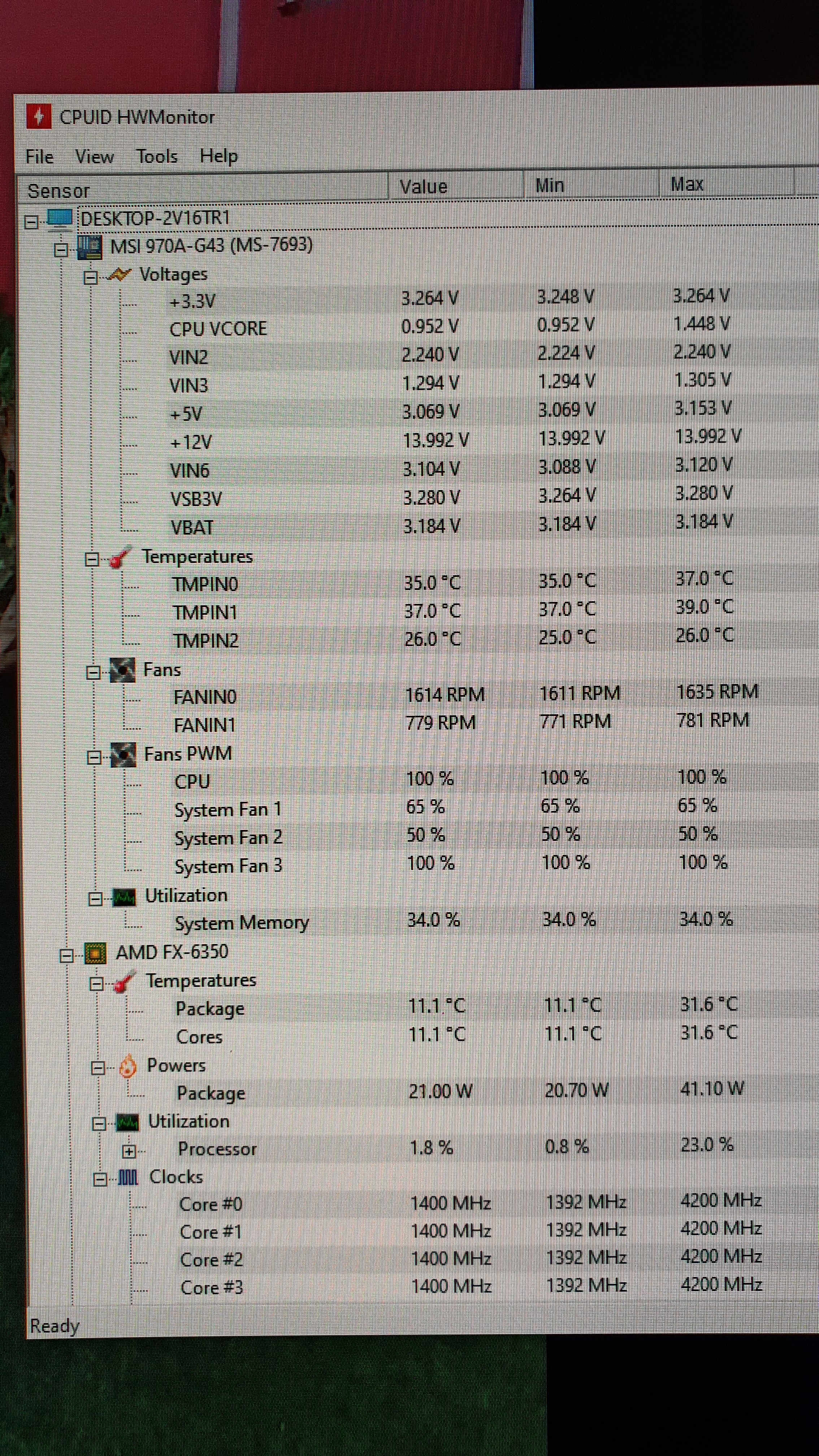 Die letzten beiden Screenshots sind nach ca.30min Betrieb gewesen , hatte das HW Monitor Programm die ganze Zeit laufen gelassen, aber ich denke , ich werde um einen neuen Rechner nicht drumrum kommen.