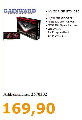 Jetzt habe ich ein Angebot bekommen, wo es die oben besagte Karte für 170€ neu zu kaufen gibt.