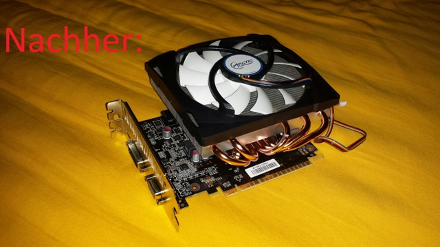 Fazit: Mit neuem Lüfter, deutlich bessere Kühlung (dadurch auch längere Haltbarkeit der Grafikkarte) und deutlich leiser als mit Originallüfter. Der Umbau gestaltet sich relativ einfach. Klare Kaufempfehlung deshalb: GTX 750TI + Arctic Accelero Mono Plus.