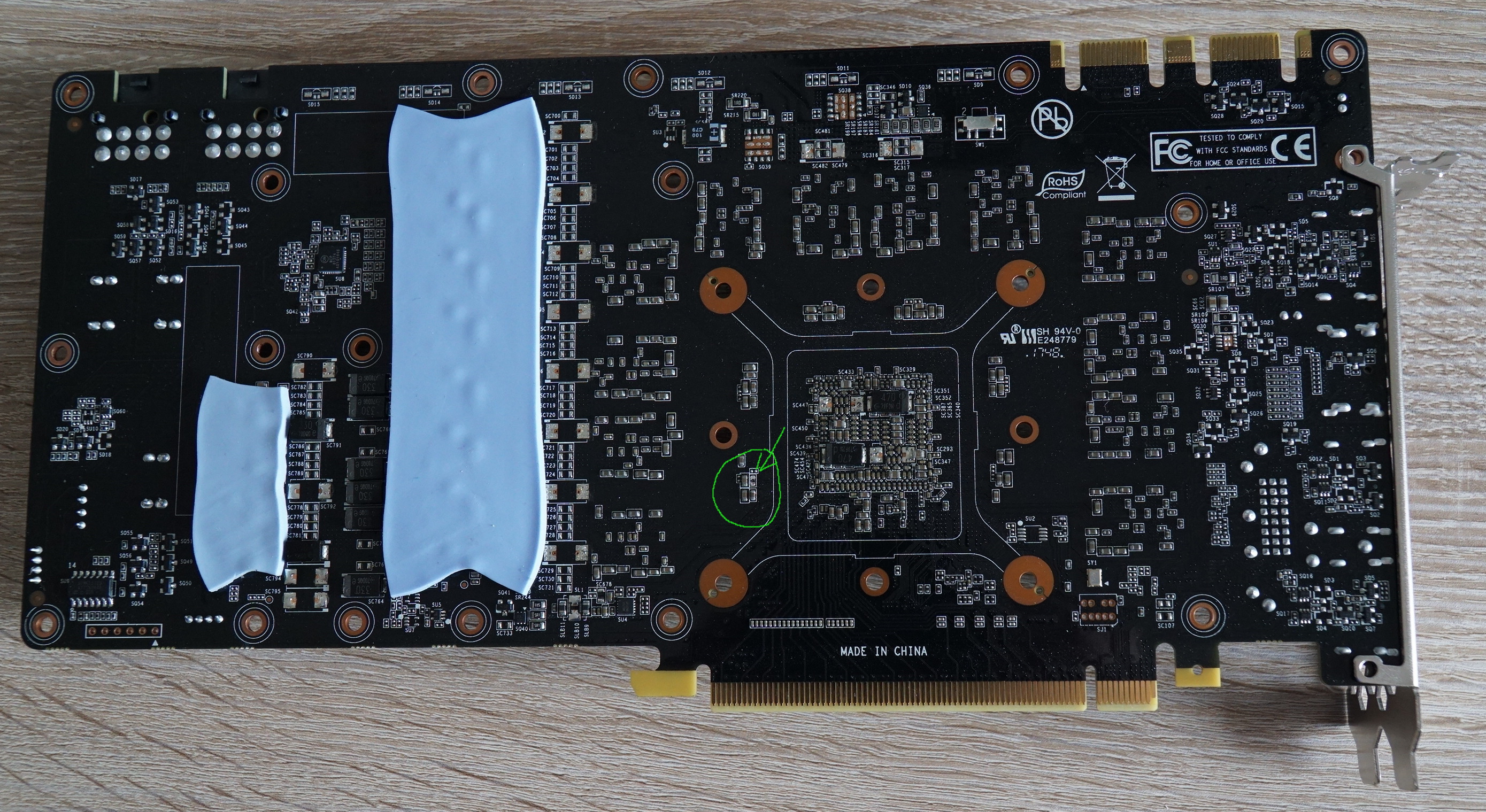 Leider ist bei meiner Gainward GTX 1080 TI Phoenix GS beim Umbau des Kühlers heute ein SMD Kondensator abgebrochen und im Nirvana verschwunden.