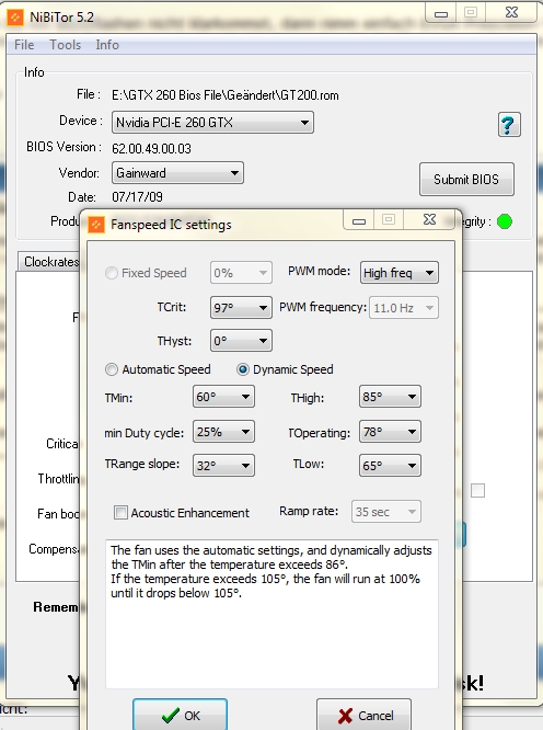 Hat jemand hier eine GTX260 GS und funktioniert da die Lüftersteuerung? Geht die Karte unter 40%?